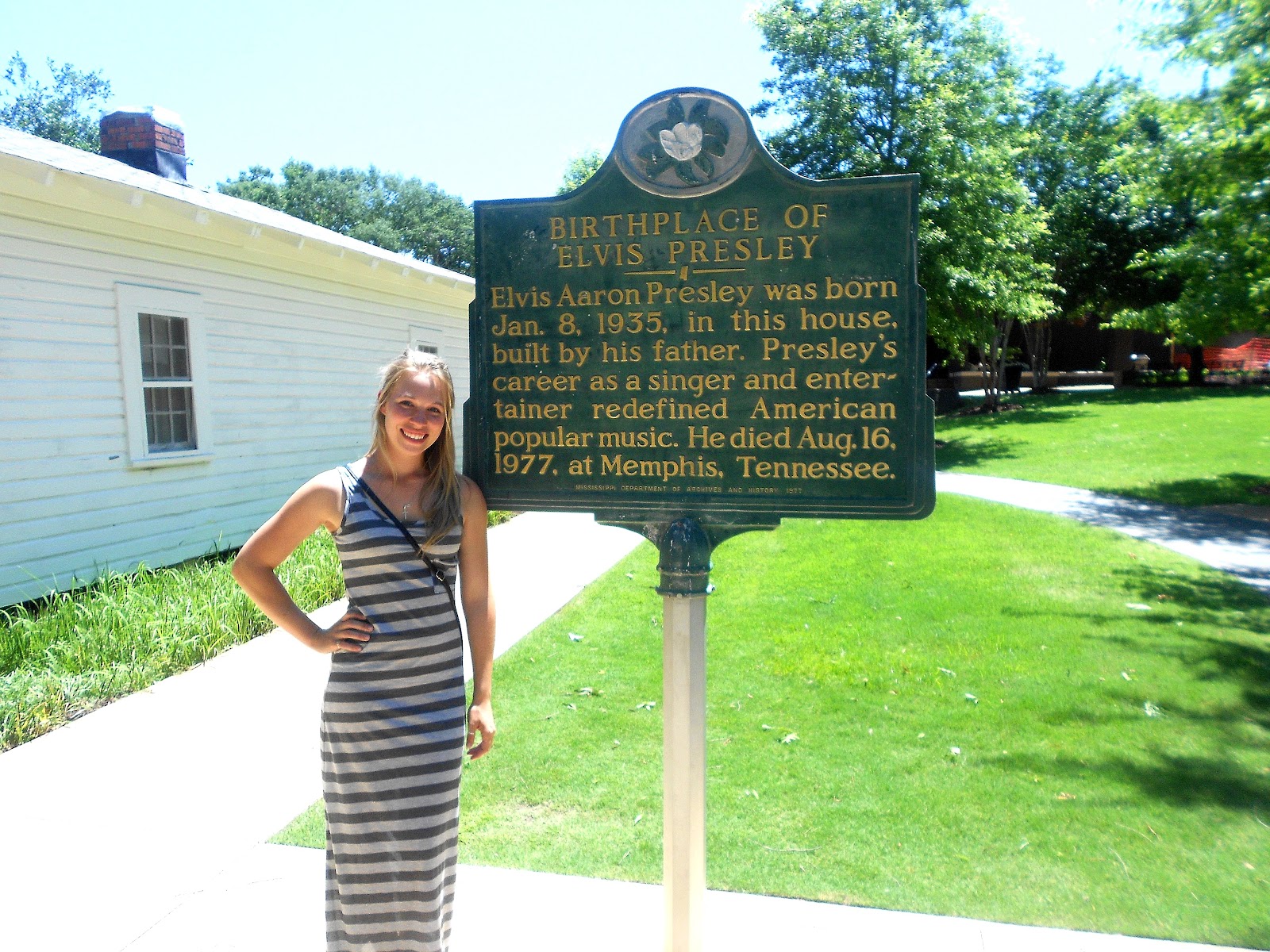 After lunch [or before] we drove past the park Sandy took Randy and I to as children! What an experience, to drive through your childhood - especially that piece of time in mine. That night we had a good old fashioned southern home cooked meal. The whole family came over as we devoured corn, biscuits, cornbread, ham, green beans, egg salad, and sweet tea - yum!! Once again, as people wrapped me in warm embraces and asked about Randy I sat smiling, barely remembering these dozen or so faces surrounding me. The only memories 14 years old and barely touched. Never the less it was wonderful to see them and to remember what it was like being 8 and living in Mississippi. The following morning Sandy, Jason, Grandma, and I headed to Tupelo, Mississippi - the place where Elvis was born!